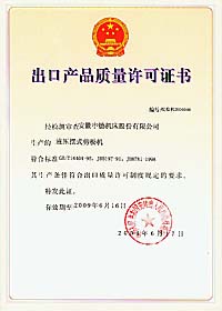 經(jīng)國家鑄造鍛壓機械質量監(jiān)督檢驗中心的嚴格檢驗及安徽出入境檢驗檢疫局的現(xiàn)場抽樣檢測,我司“中德”牌機床產(chǎn)品均符合出口質量許可制度規(guī)定的要求,于近日拿到了“出口產(chǎn)品質量許可證書”,為中德品牌打入國際市場邁出了堅實的一步。