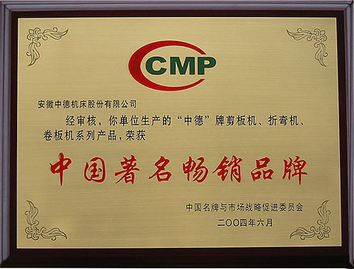 中德牌機(jī)床獲得“中國(guó)著名暢銷品牌”榮譽(yù)稱號(hào)